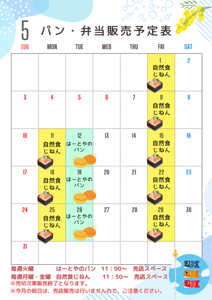 ※今月は、どちらも祝日はお休みです。ご注意ください。